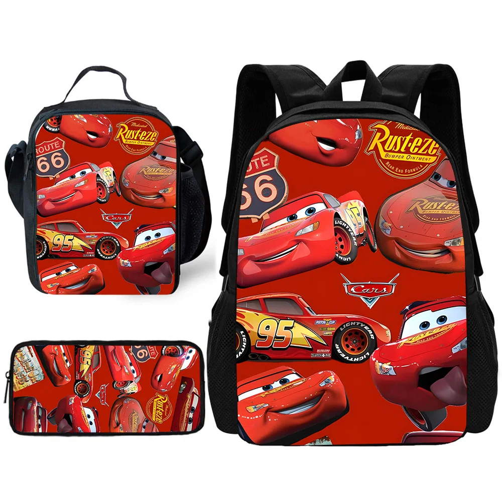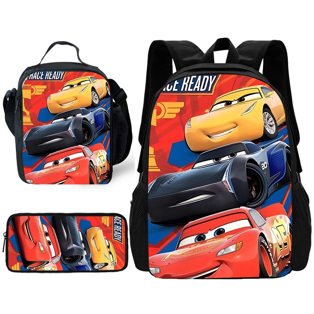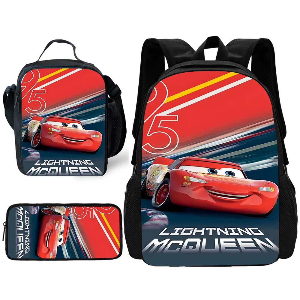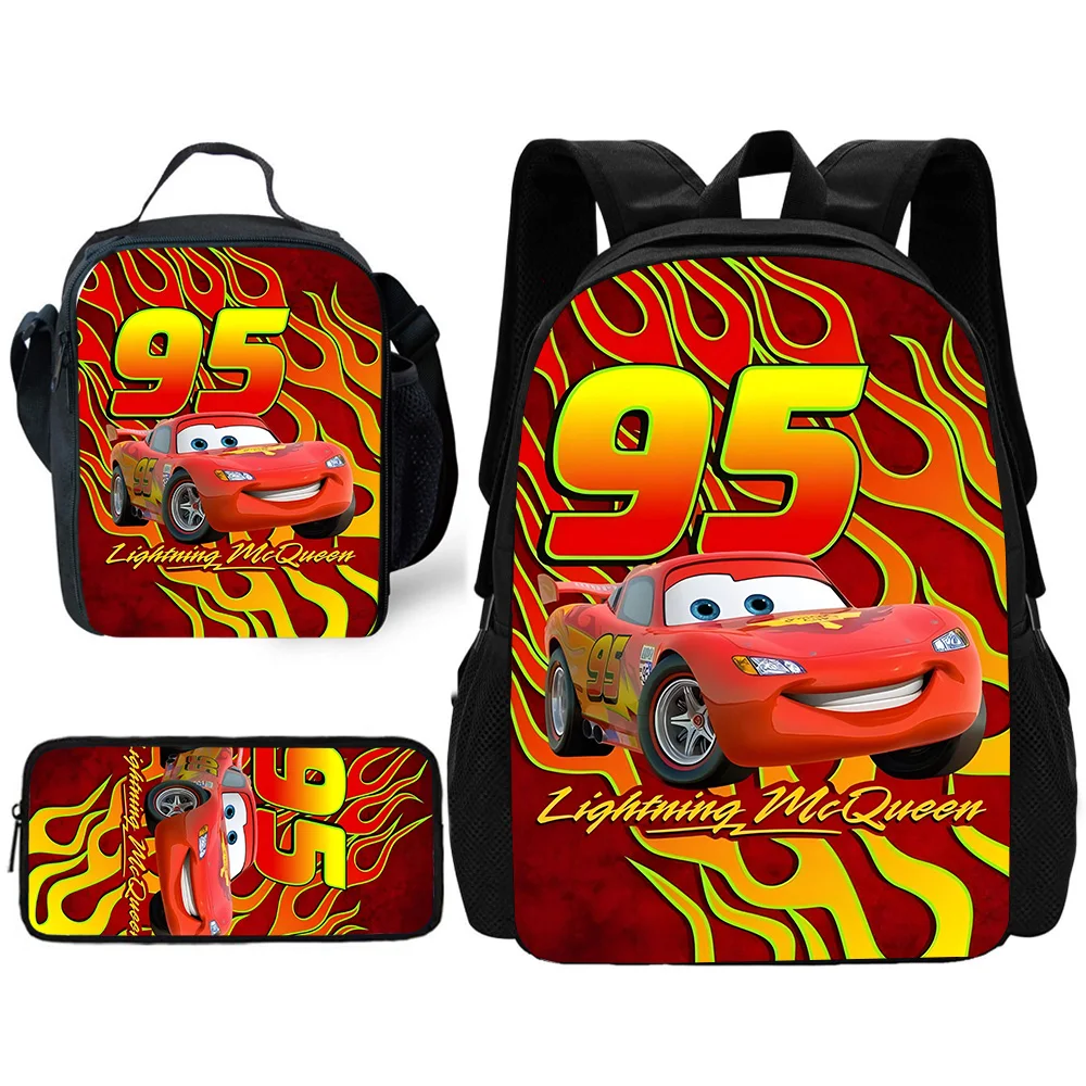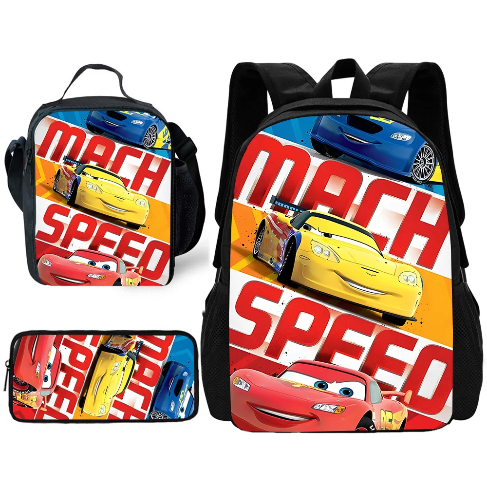 Ensemble de sacs à dos d’école Racing Lightning McQueens pour enfants avec sacs à déjeuner, trousses à crayons et cartables