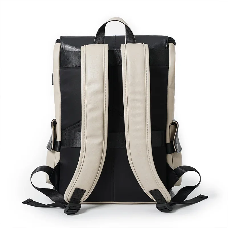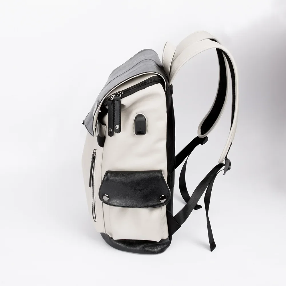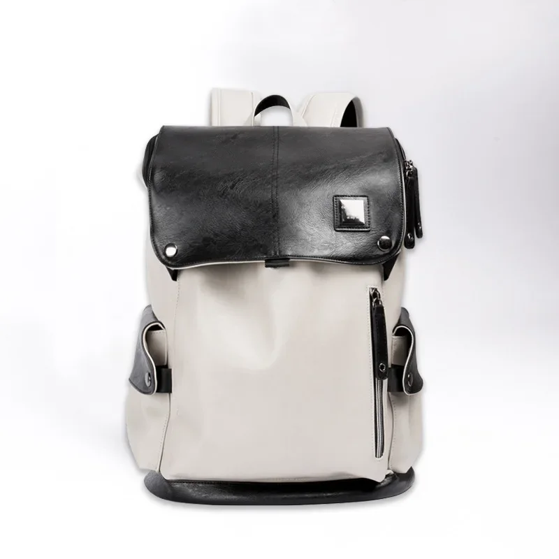Sac à dos unisexe patchwork en cuir PU, sac de voyage, grande capacité, multi-poches, pour étudiants, ordinateur portable, cartable: Un design astucieux